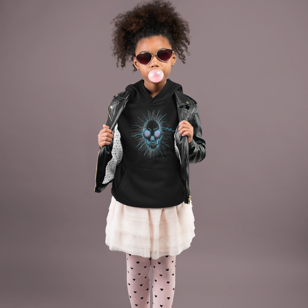 Get ready to glow! The Summer Electric Blue Edition youth hoodie from our Seasons of the Skulls collection is here to turn up the voltage. This awesome black hoodie features a bold Electric Blue Skull—a wild mix of fireworks and lightning bolts that scream summer fun and fearless energy.